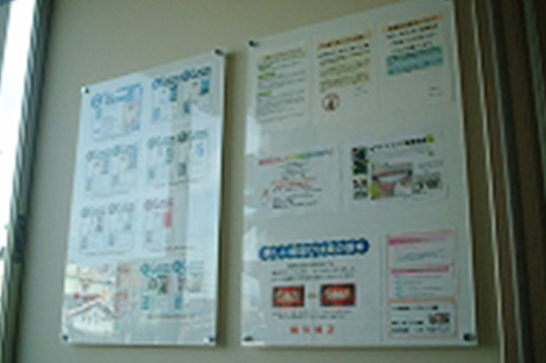 スタッフ紹介ボードや、イベント情報が掲示してあります。