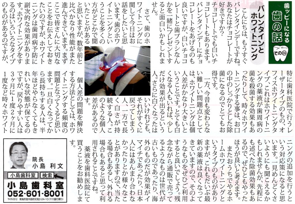 ホワイトニングをするのはいろいろなタイプのものがあるのですが、特に歯科医院で行うレーザータイプのもの、オフィスホワイトニングタイプ、これはホワイトニングの薬液が歯周病の菌を殺菌する効果もあったりして、時々ホワイトニングする事は、お口の中のしっかりとした除菌になるのでとてもお得です。