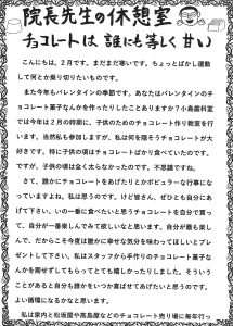 小島歯科室では今年は2月の時期に、子供のためのチョコレート作り教室を行います。