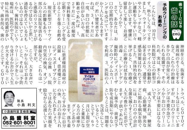 GO TOトラベル、GO TOイートもはじまっていますが、お口のクリーニングは不要不急でしょうか?
